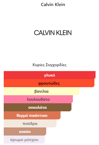 Το CK One Shock For Her Eau de Toilette από Calvin Klein είναι ένα Ανατολίτικο Πικάντικο άρωμα για γυναίκες. Κυκλοφόρησε το έτος 2011. Έχει δημιουργηθεί από Ann Gottlieb και IFF. Οι νότες κορυφής είναι Λουλούδι του Πάθους, Κόκκινη Παπαρούνα και Παιώνια, οι μεσαίες νότες είναι Βατόμουρο, Μεξικάνικη Σοκολάτα, Νάρκισσος και Γιασεμί, οι νότες της βάσης είναι Βανίλια, Μόσχος, Κεχριμπάρι και Πατσουλί.