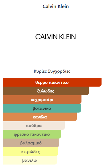 Το Obsession for Men Eau de Toilette από Calvin Klein είναι ένα Ανατολίτικο Ξυλώδες άρωμα για άνδρες. Κυκλοφόρησε το έτος 1986. Ο αρωματοποιός αυτού του αρώματος είναι ο Robert Slattery. Οι νότες κορυφής είναι Κανέλα, Λεβάντα, Κόλιανδρος, Μανταρίνι, Λάιμ, Περγαμόντο και Γκρέιπφρουτ, οι μεσαίες νότες είναι Σμύρνα, Μοσχοκάρυδο, Γαρύφαλλο, Ροδόξυλο Βραζιλίας, Πεύκο, Φασκόμηλο, Γιασεμί και Κόκκινα Μούρα, οι νότες της βάσης είναι Κεχριμπάρι, Βανίλια, Σανδαλόξυλο, Μόσχος, Πατσουλί και Βέτιβερ.
