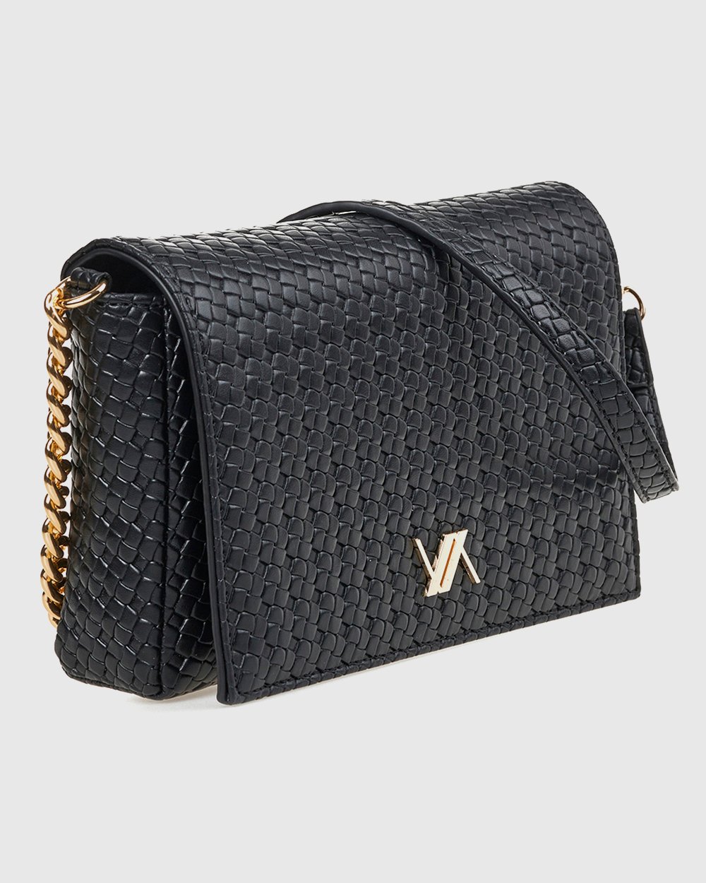 chic εμφάνιση. Η υφασμένη υφή και οι μεταλλικές λεπτομέρειες προσθέτουν